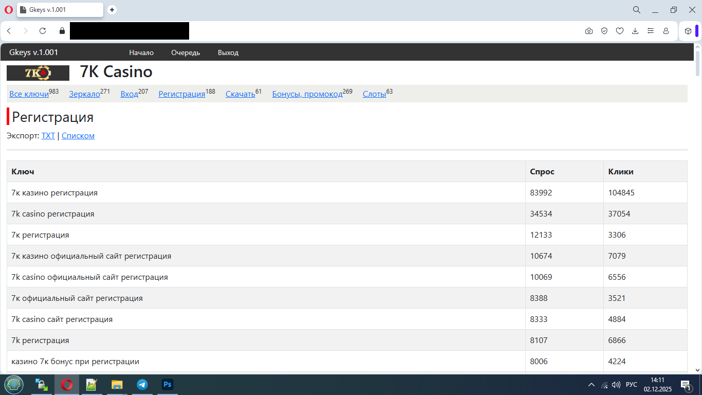 Можно выгрузить как весь пул запросов, так и с определенным ключом (регистрация, зеркало и т.п.)