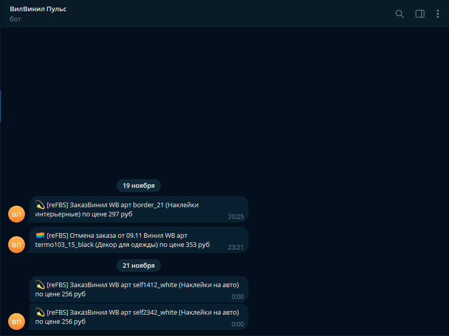 Уведомления об отменах/невыкупах. Артикул, категория, цена.