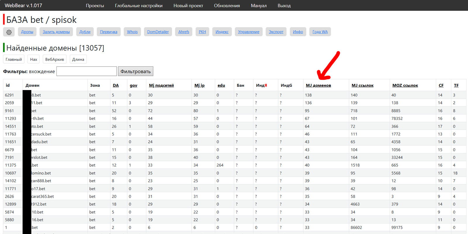 - Создаем в WebBear два проекта по типу «Свой список доменов», один называем «дропы BET», другой «дропы CASINO».