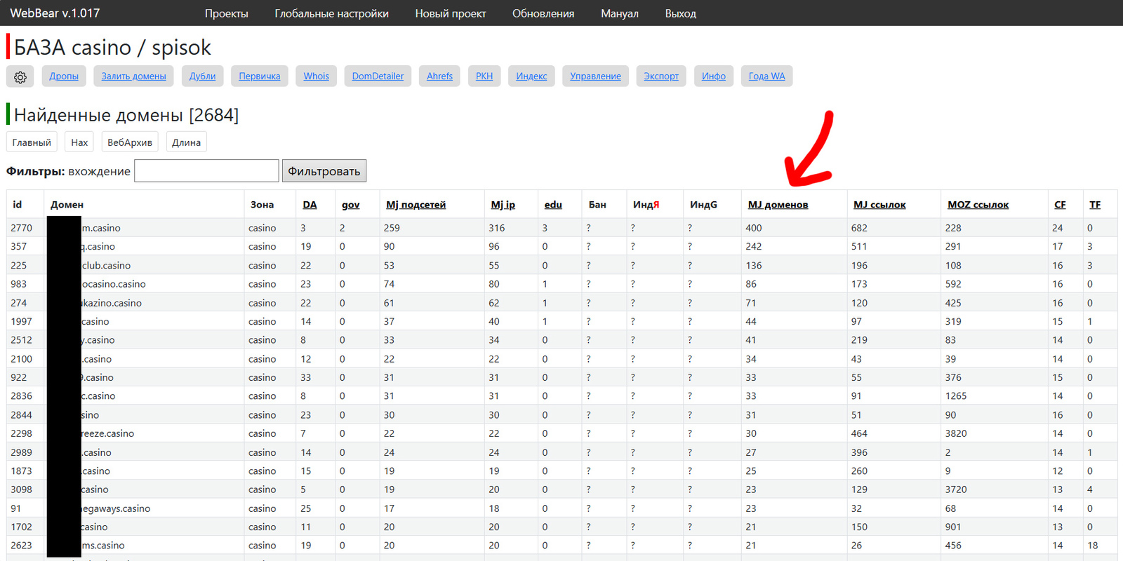 - Создаем в WebBear два проекта по типу «Свой список доменов», один называем «дропы BET», другой «дропы CASINO».
